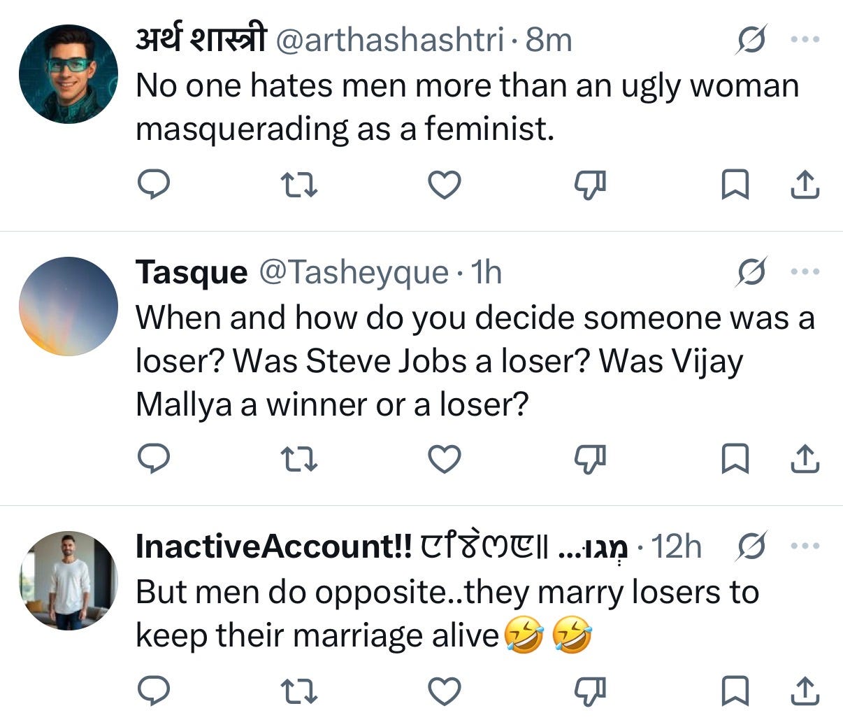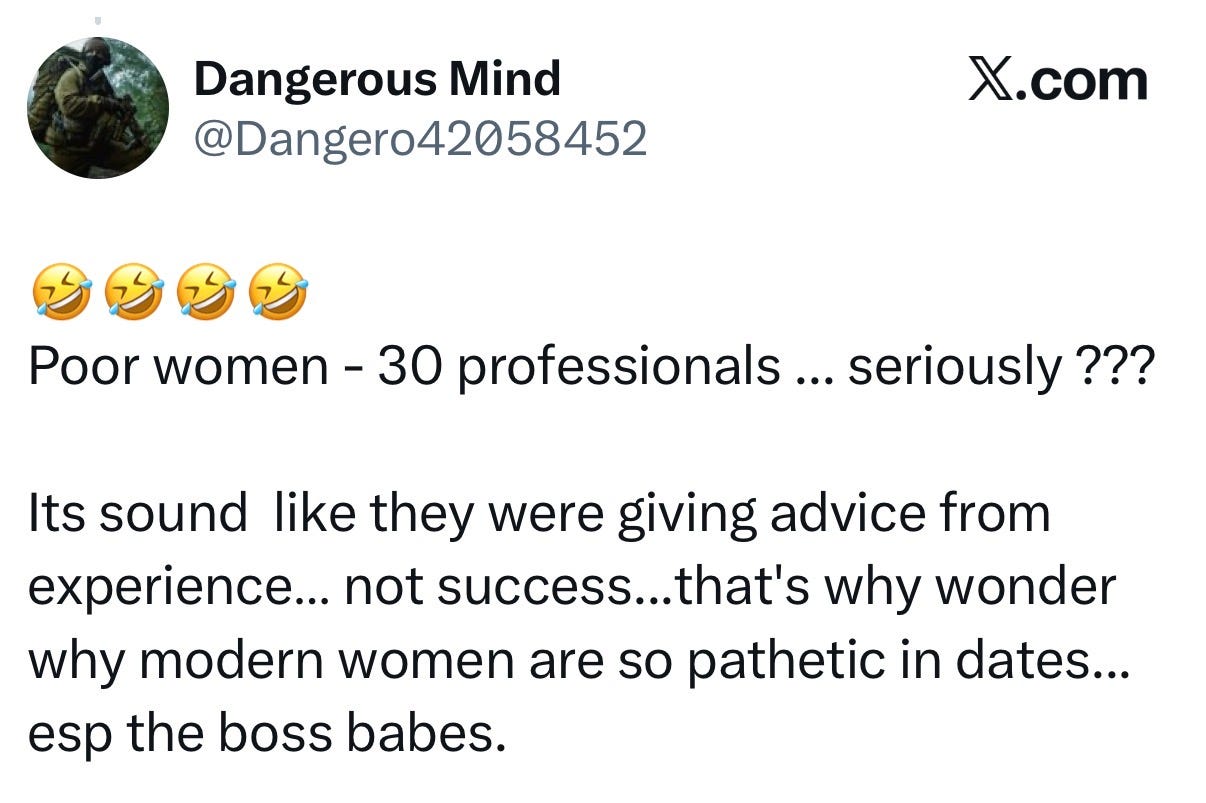 I honestly found it genuinely interesting. Not upsetting, because men have said waaaay worse to me, but just interesting. I had posted a word. No context. No criteria. No list of offending behaviours. No call outs. No metrics. Just the word “loser,” attached to the advice not to marry one. And a substantial number of men had looked at that word, decided it applied to them, and reacted accordingly.