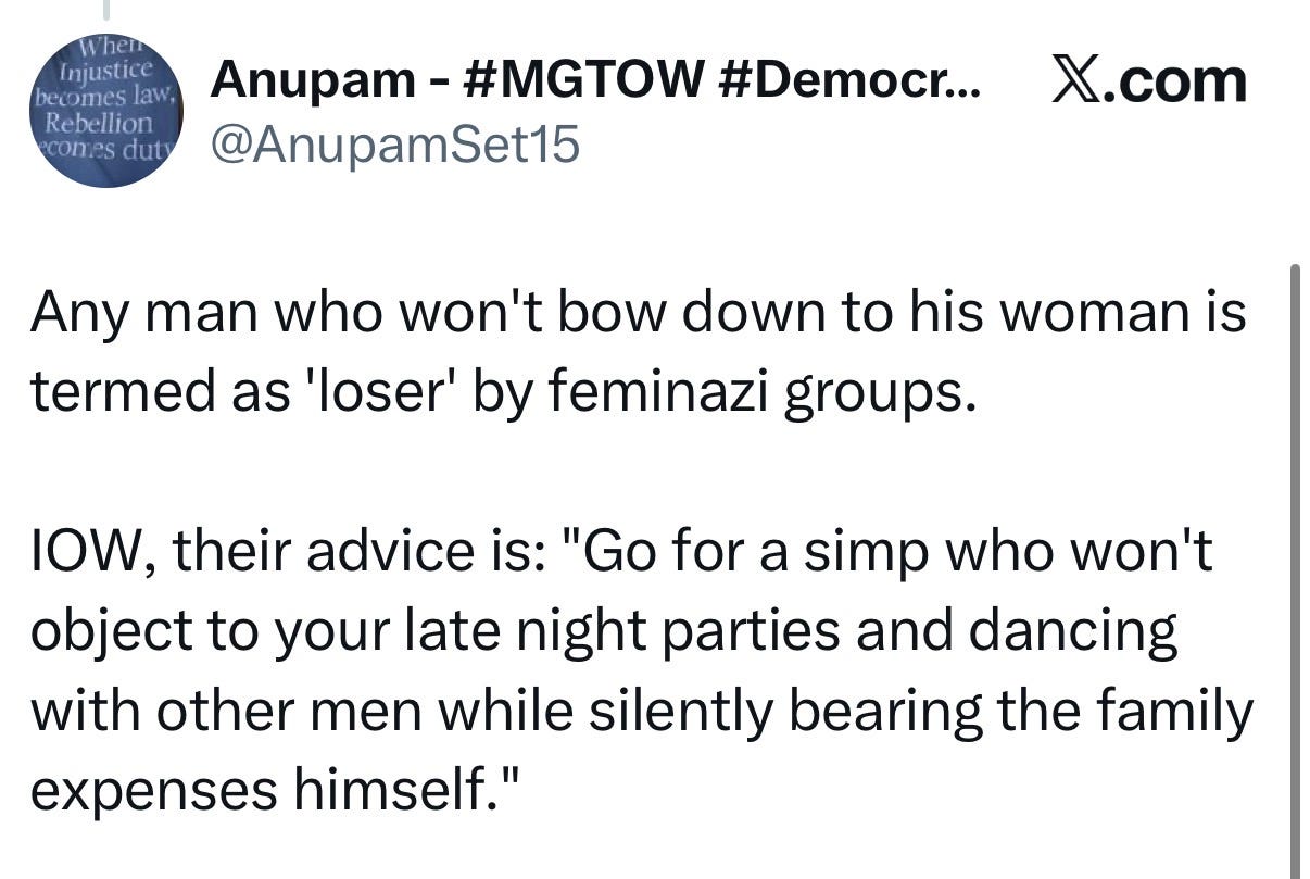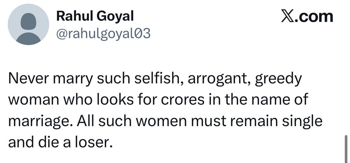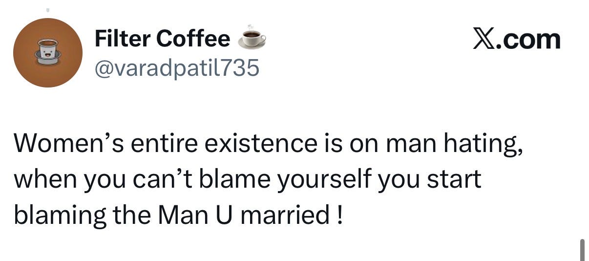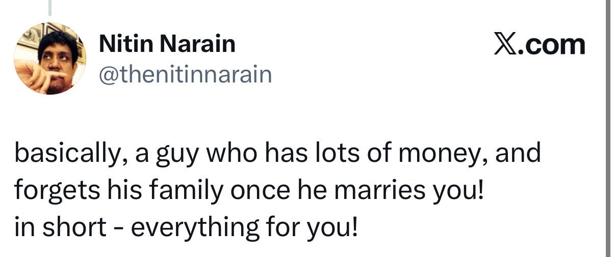In the Indian middle-class context, you are not just choosing a person. You are choosing a family, a set of expectations, and, most critically, a man’s willingness to protect you from the parts of those expectations that aren’t yours to carry. A loser in this context is not just the man who won’t share the housework. He’s the man who is privately supportive but publicly spineless. Who will help you cook dinner for twelve people but won’t tell his mother that hiring a cook is a reasonable thing to do. Who will have an apologetic smile on his face when he throws you under the bus for an obscene familial request and then say something like ‘Yaar, mummy papa hai na.’ Who calls himself progressive but expects you to perform the bahu role on festival days, family visits, and every occasion where his family is watching.