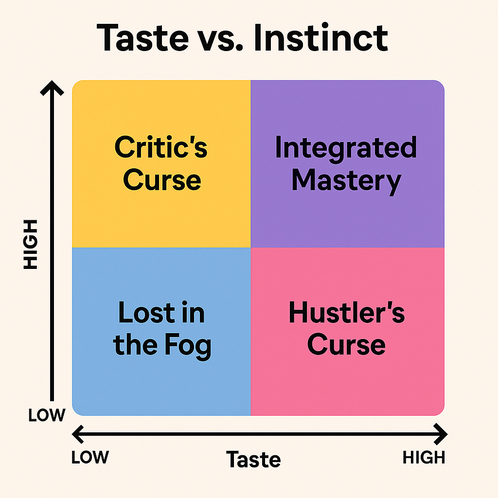 Taste without instinct is analysis paralysis, knowing what’s good but never making it. Instinct without taste is motion without progress, doing everything, but not the right things.