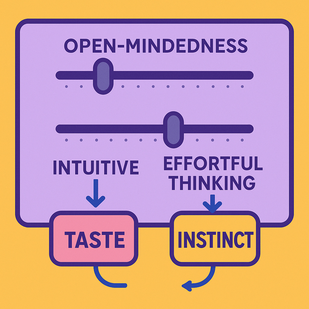 Which means the real challenge isn’t picking a side in the taste vs. instinct debate; it’s knowing when to be open, when to be decisive, when to coast on intuition, and when to grind through the cognitive heavy-lifting.